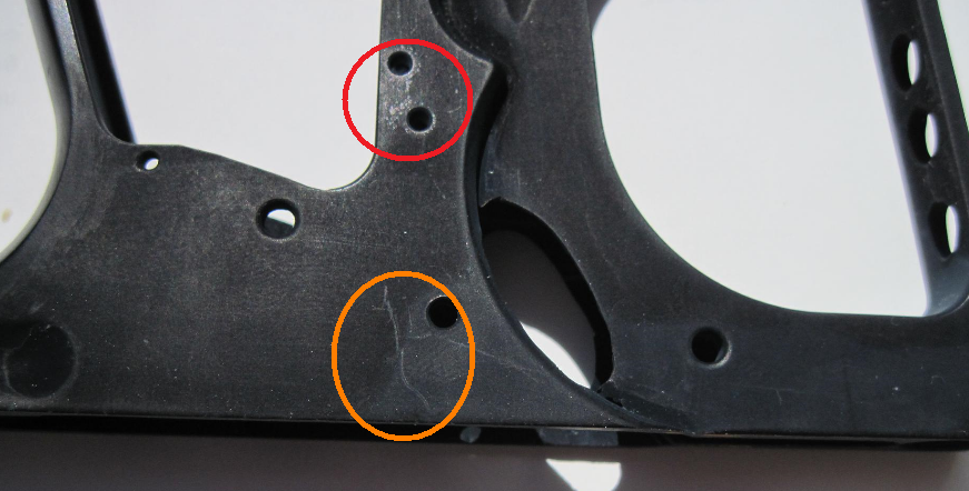 das sind evtl. Spritzgussteile. Durch die nachträgliche Bearbeitung verändert sich das Gefüge an der Oberfläche.