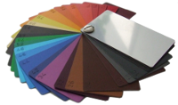 - mit geeigneten Farbstoffen kratzfest und lichtecht einfärbbar; mögliche Kombinationen mehrerer Farbstoffe ermöglichen fast jeden beliebigen Farbton