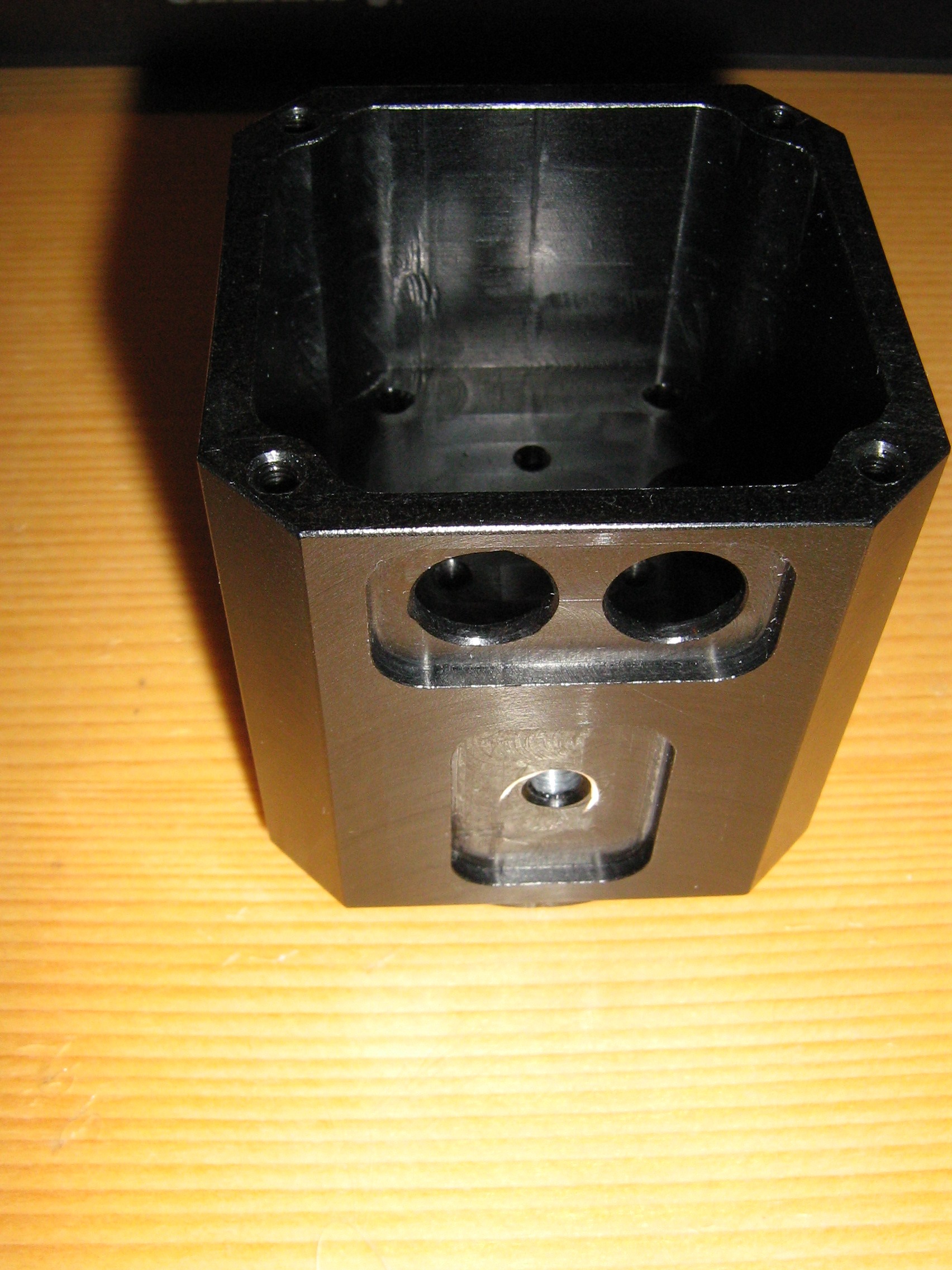 Ansonsten überall gleichmäßige Farbaufnahme, harte Oberfläche. Als nächstes wird farbig eloxiert.