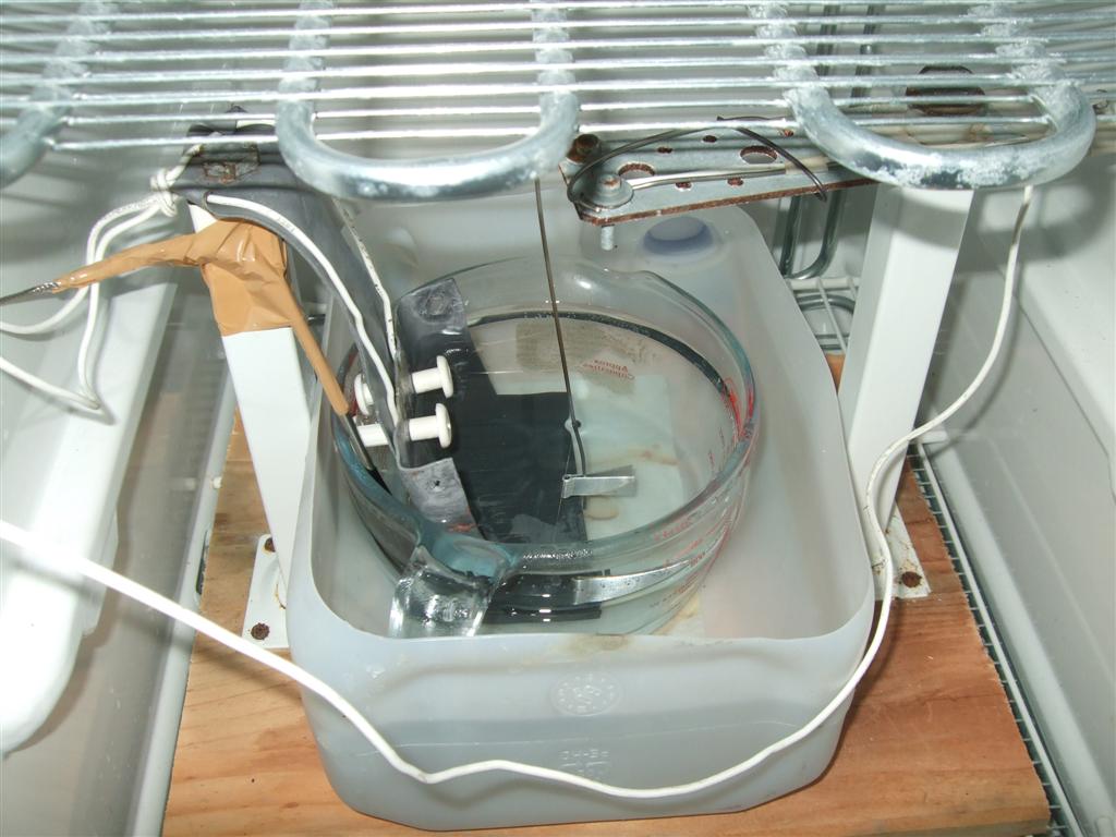 Titandraht mit Kabel zur Stromquelle fest verschraubt (Zinkblech ist nur Träger)