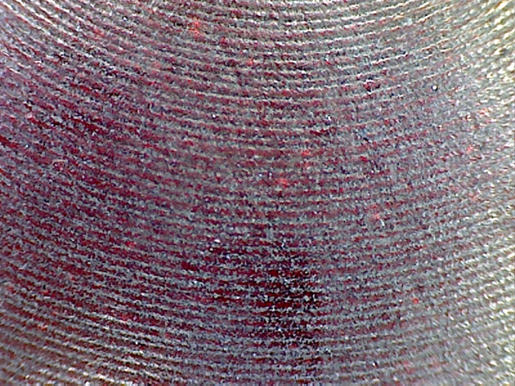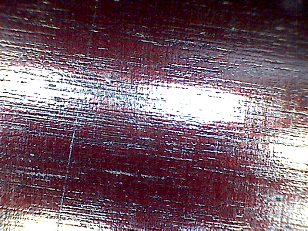 Die etwa 50fache Vergrösserung zeigt einige Fehler die mit bloßem Auge nicht auffallen. Allerdings traten die Streifen diesmal nicht auf, obwohl man im Bild 10 deutlich die "Spanbruchstellen" sieht. Vielleicht hat dieses Phänomen auch eine andere Ursache.