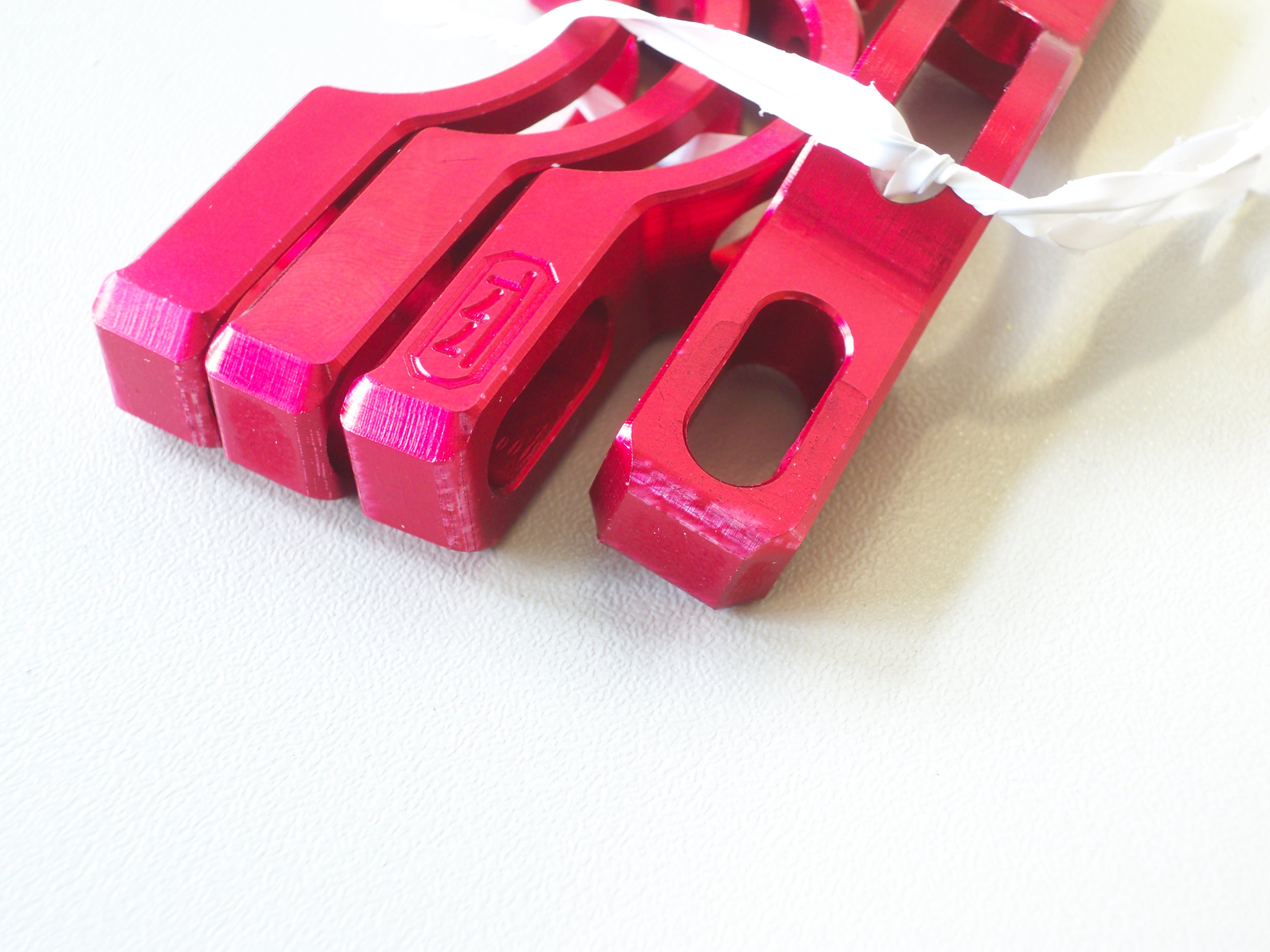 Jetzt habe ich schon wieder Teile mit diesen Spuren. Das ungewöhnliche ist, dass es einfache Frästeile aus 6061 sind. Die Oberfläche habe ich genauestens durch CAD bestimmt. Die Badtemperatur sowie Konzentration waren ideal.