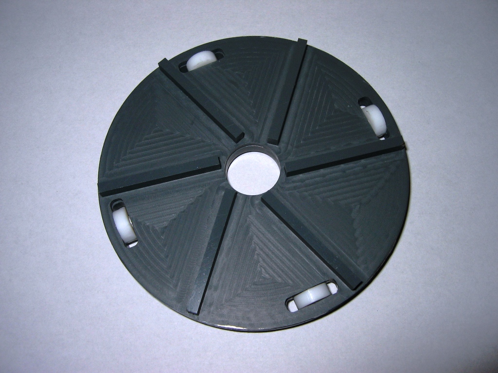 Im Anhang mal ein Bild des Rührers, ist aber Version 1, Version 2 muss ich noch fräsen. Die 4 Rollen haben sich als ungünstig erwiesen, da sie zum klappern anfangen, da nicht immer alle 4 Kontakt haben. Der nächste Rührer hat 3 Rollen. Den muss ich aber erst noch fräsen.