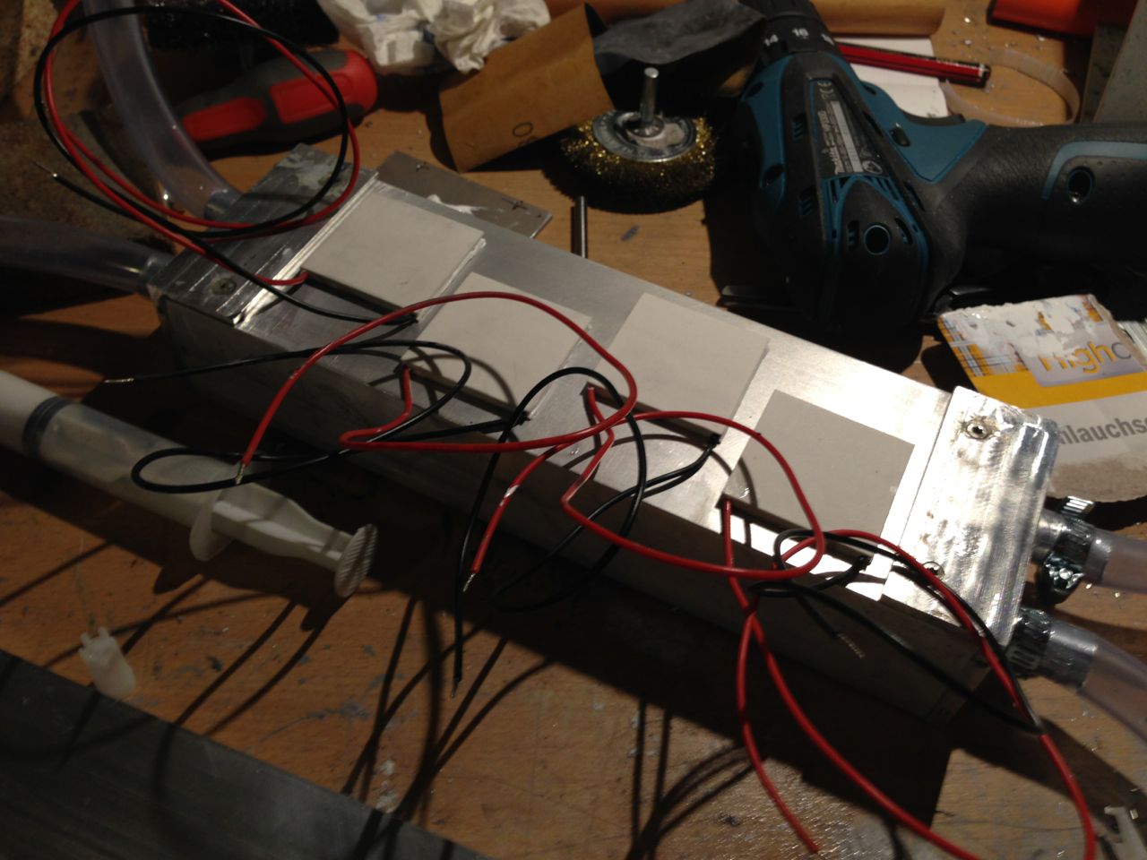Der Zusammenbau ist bald fertig wie ihr in den Bildern seht und ich werde euch berichten wie es funktioniert! Falls ja wird noch ein Thermoelement gekauft, wo 19°C Soll Temperatur eingestellt werden und dann die Peltierelemente automatisch nur eingeschalten werden wenn es abweicht.