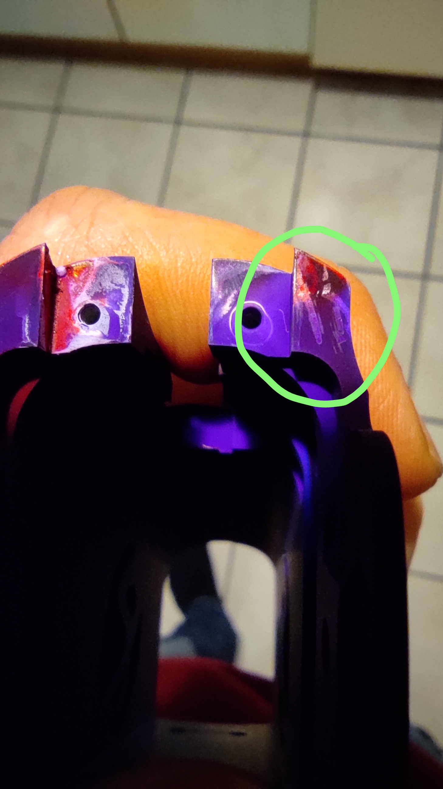 1. Beim Abbeizen mit der Natronlauge der alten Eloxalschicht ging das nicht wie in diversen Videos und der anleitung innerhalb von Sekunden, sondern ich habe die Werkstücke stellenweise Minutenlang in der Lauge gebadet und anschließend musste ich die Farbe mit einer groben Brüste oder Stahlwolle herunterschrubben. In die kleinsten Ecken bin ich damit selbstverständlich nicht gelangt. Ich hatte die Natronlauge mit dem Mindestmaß, also 50g auf 1l augelöst und hinterher verstärkt. Das hatte besserung gebracht, aber dennoch waren es mehrere Minuten, statt Sekunden.