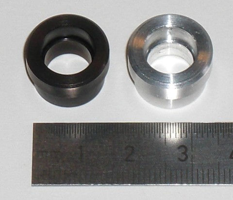 Das Ergebnis ist hier zu sehen, links das eloxierte Teil, rechts zum Vergleich ein unbehandeltes Teil.