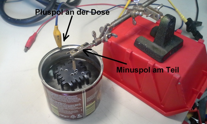 Da das eloxieren mit Gleichstrom funktioniert, muss es doch theoretisch möglich sein den Prozess umzukehren und zum enteloxieren zu verwenden - ohne Chemikalien!