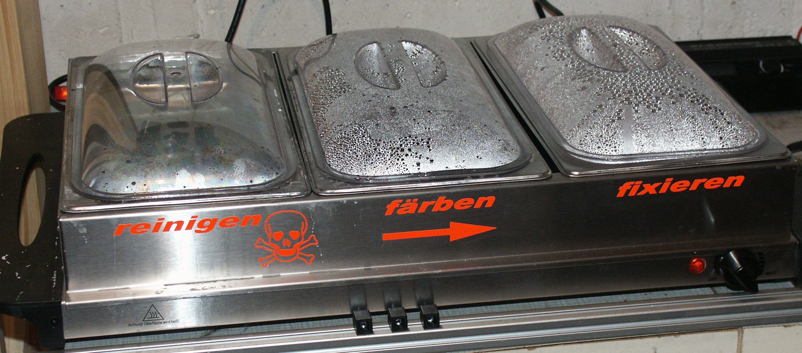 1x Wärmeplatte mit 3 x3 Liter Behältern 40.- (ebay) zum reinigen, färben und wässern