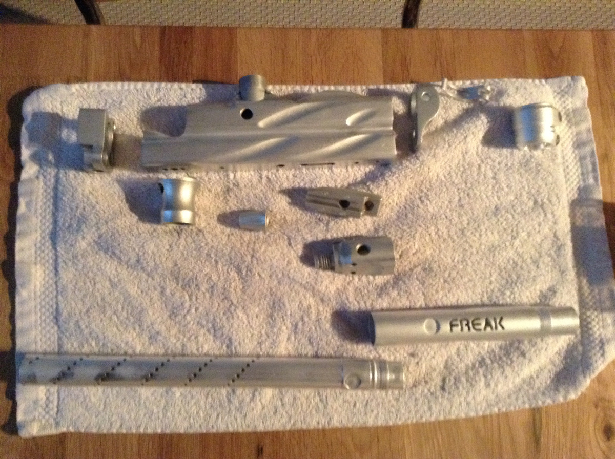 ^^ wenn du auf den trigger achtest siehst ringsrum das etwas hell ist, glaub mir ich bin gewissenhaft und trotzdem passiert des, selbst wenn du es sofort wegwischst reicht des schon um die eloxierung nich 100% sein zu lassen. Die Etha hab ich gemacht, die war vorher Schwarz original. Hier siehst schön wie gut des mit dem Maskieren geht, die Gewinde sind unberührt^^ die farblose Paste wird denn nur so Weißlich drum sieht des so komisch aus dort^^ bei dem Foto war sie noch nich geputzt und gereinigt nach dem Anodisieren^^