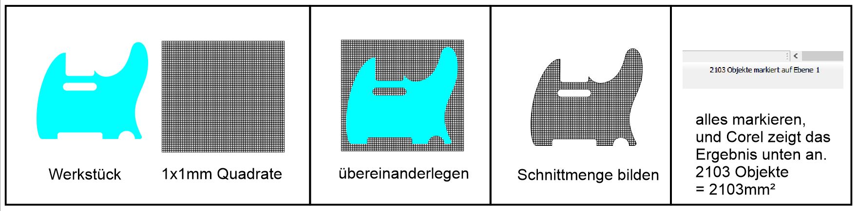 Dazu bilde ich (graphisch) die Schnittmenge aus meinem Werkstück, und einem Raster von lauter 1x1mm grossen gezeichneten Quadraten.