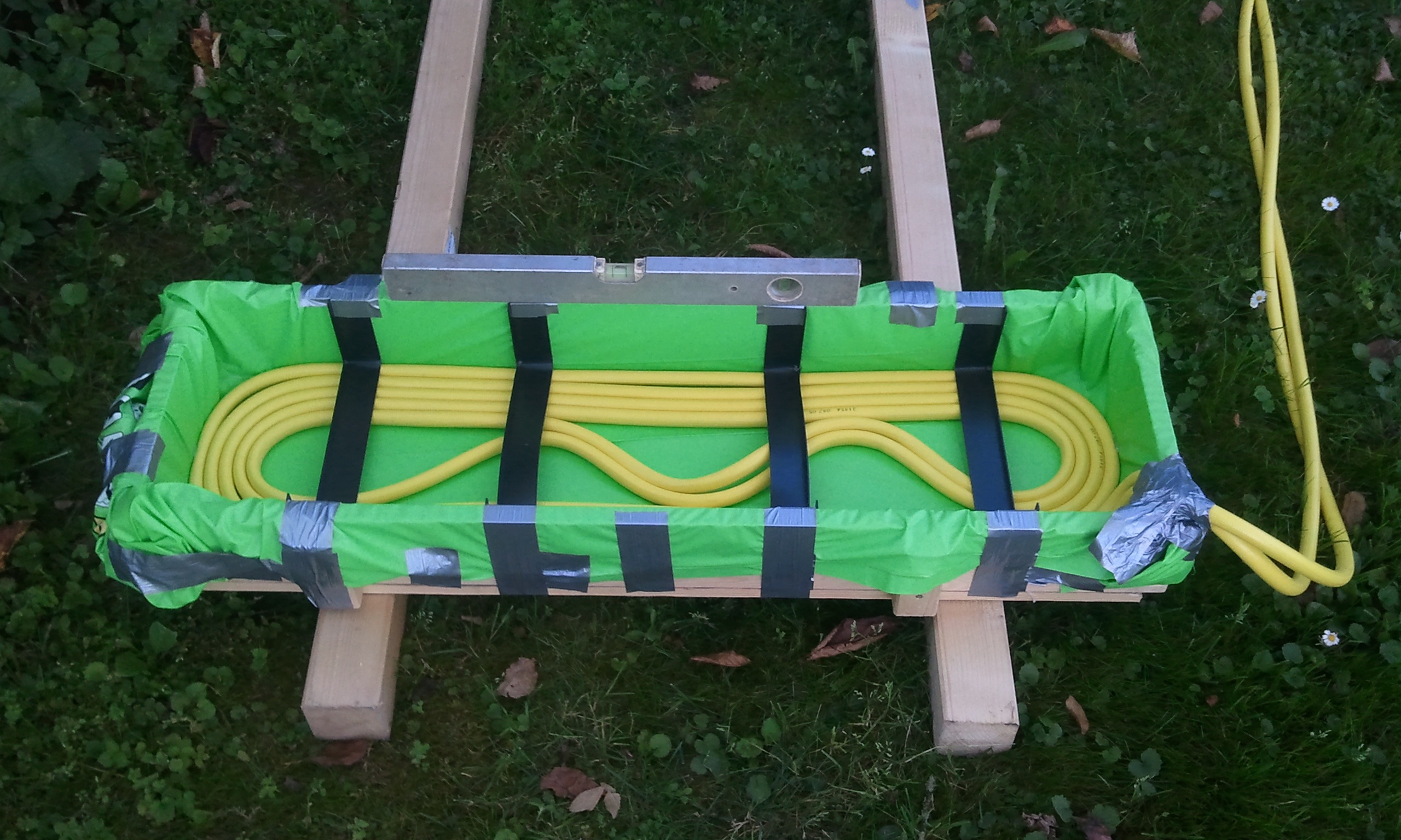 Oder noch einfacher: man nimmt eine stabile Teichfolie und klebt diese von innen an den Behälter. Durch Erwärmung bis zum Erweichen lässt sich die Folie auch recht gut in die Ecken ziehen.