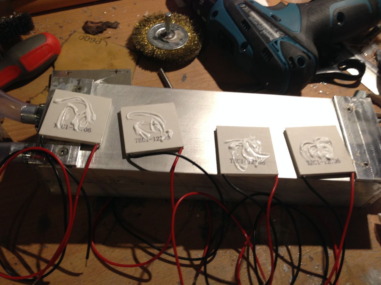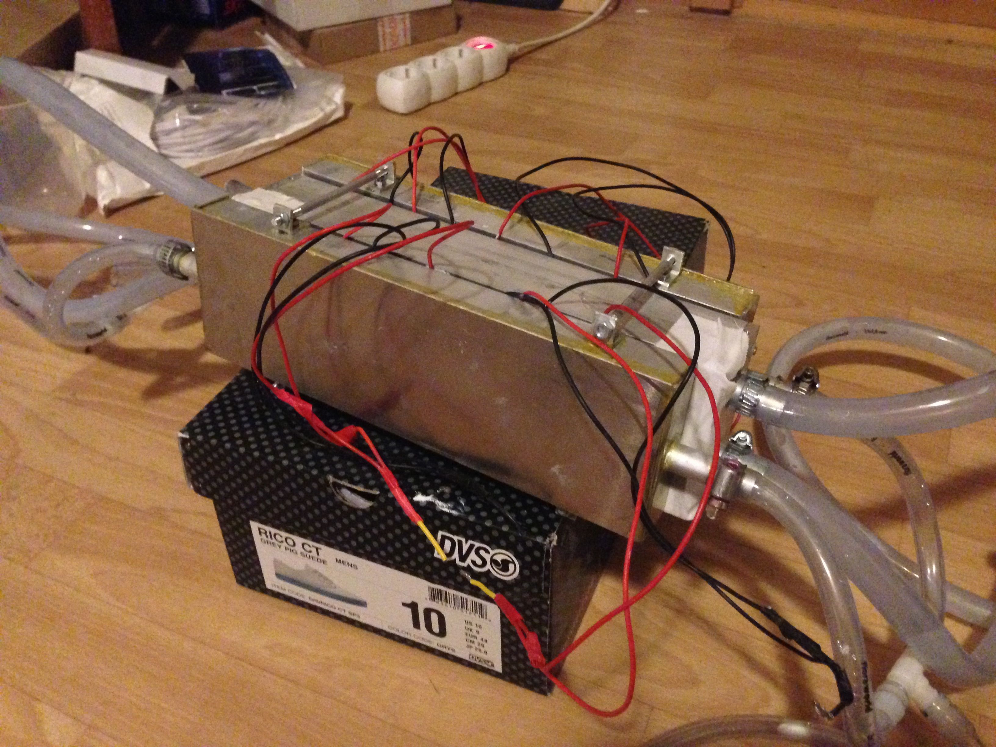 Der Zusammenbau ist bald fertig wie ihr in den Bildern seht und ich werde euch berichten wie es funktioniert! Falls ja wird noch ein Thermoelement gekauft, wo 19°C Soll Temperatur eingestellt werden und dann die Peltierelemente automatisch nur eingeschalten werden wenn es abweicht.