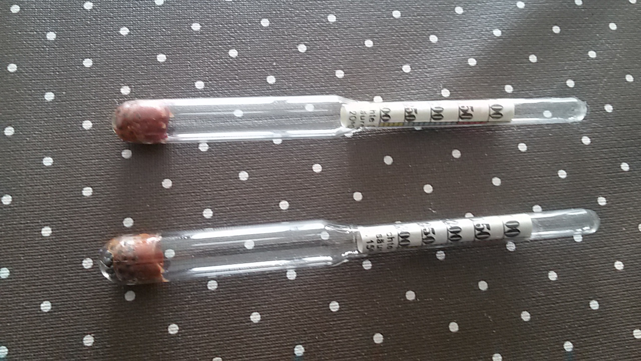 Eine weitere Frage die ich mir stelle ist, in wie weit ich auf diese Aräometer trauen kann. Ich habe eins für 15Grad und eins für 20Grad. Beide zeigen bei der angegebenen Temperatur ca. 1.10 g /m3 an. Würde also für ca 15 % passen.
