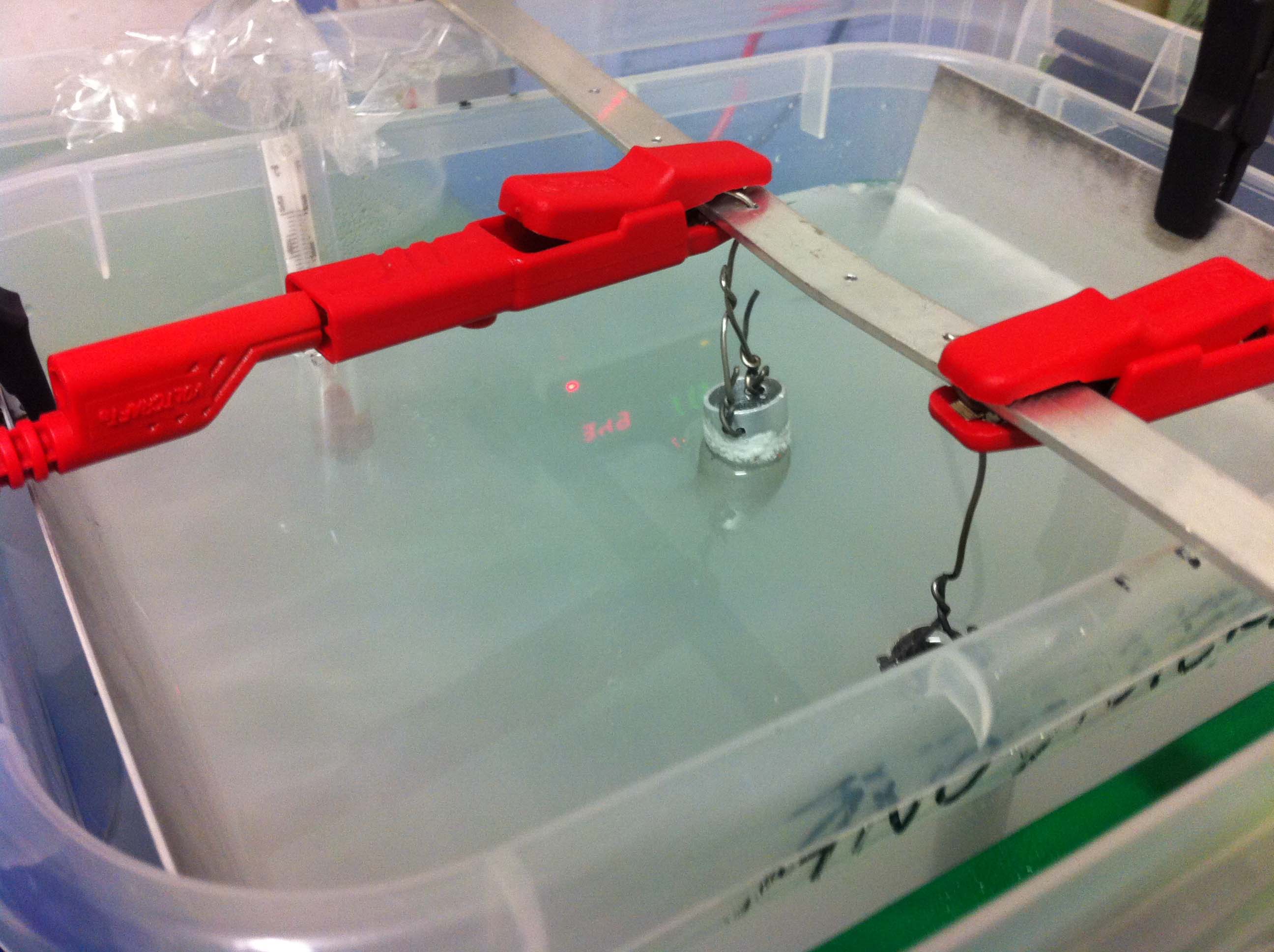 Die Querstangen an denen meine Werkstücke befestigt sind, hängen nur knapp über dem Bad.